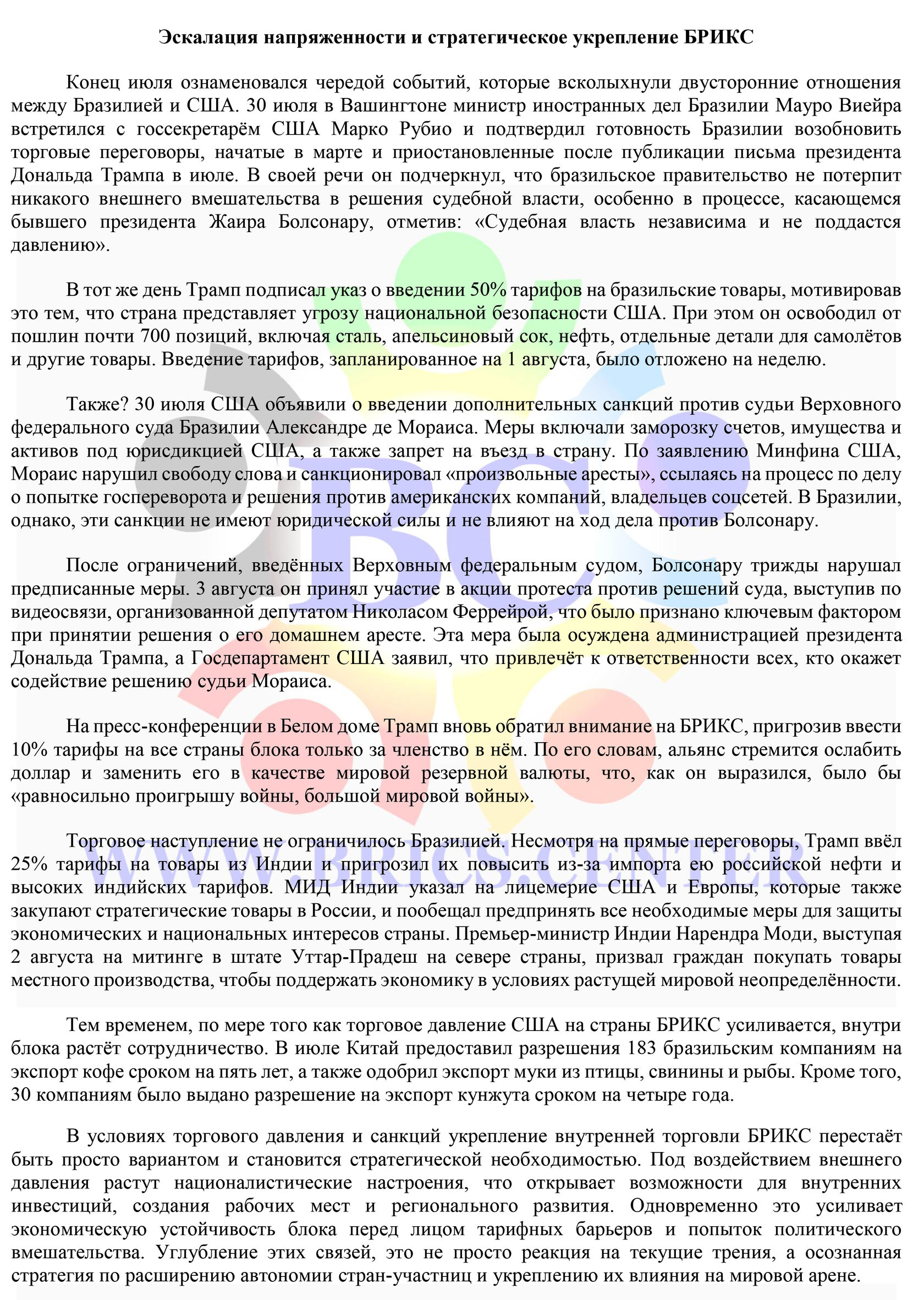 (с) Весь материал является исключительной интеллектуальной собственностью авторов БРИКС Центра. Публикация и репост возможны лишь с письменного согласия администрации БРИКС Центра.