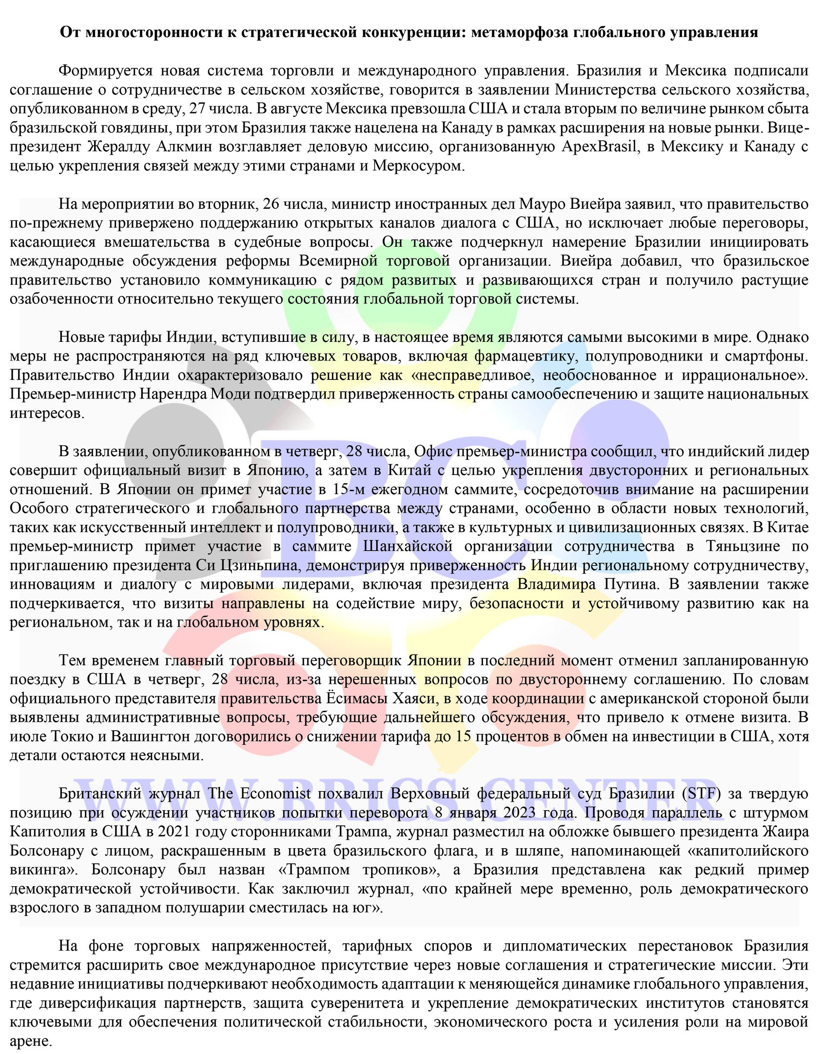 (с) Весь материал является исключительной интеллектуальной собственностью авторов БРИКС Центра. Публикация и репост возможны лишь с письменного согласия администрации БРИКС Центра.