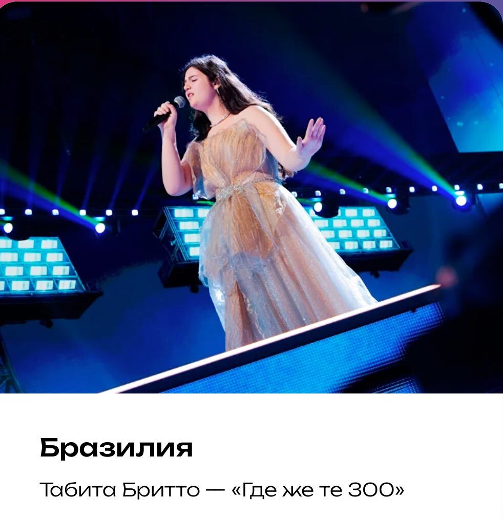 Юная исполнительница по имени Табита Бритто из Бразилии открыла конкурс своим ярким выступлением.