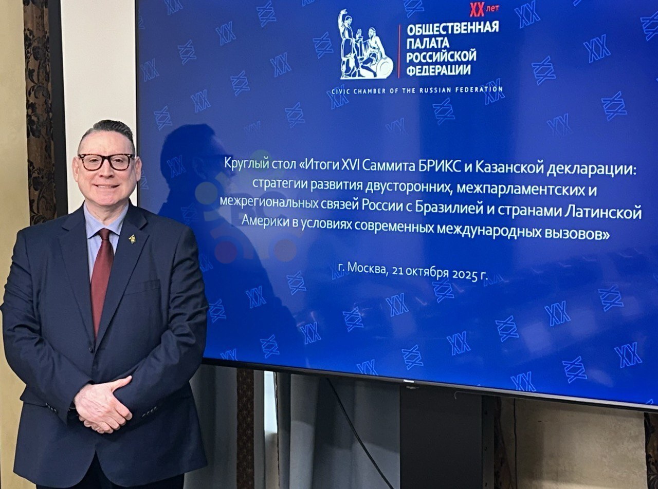 Президент БРИКС Центра Висенте Барриентос по приглашению руководства Общественной палаты РФ принял участие в заседании Круглого стола «Итоги XVI и XVII Саммита БРИКС: стратегии развития двусторонних, межпарламентских и межрегиональных связей России с Бразилией и странами Латинской Америки в условиях современных международных вызовов»