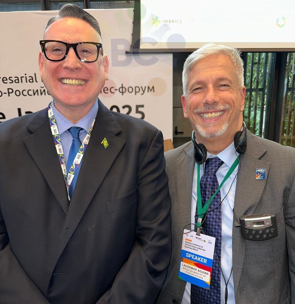На Саммите БРИКС'2025 в Бразилии Президент БРИКС Центра Висенте Барриентос и заместитель Министра иностранных дел Бразилии Лаудемар Гонсалвес де Агиар Нету в ходе конструктивного диалога констатировали совпадение программ сотрудничества и развития БРИКС Центра и бразильского МИД по бизнесу в разных направлениях и межрегионального и межмуниципального сотрудничества, а также в сфере образования, науки, спорта и многого другого.
